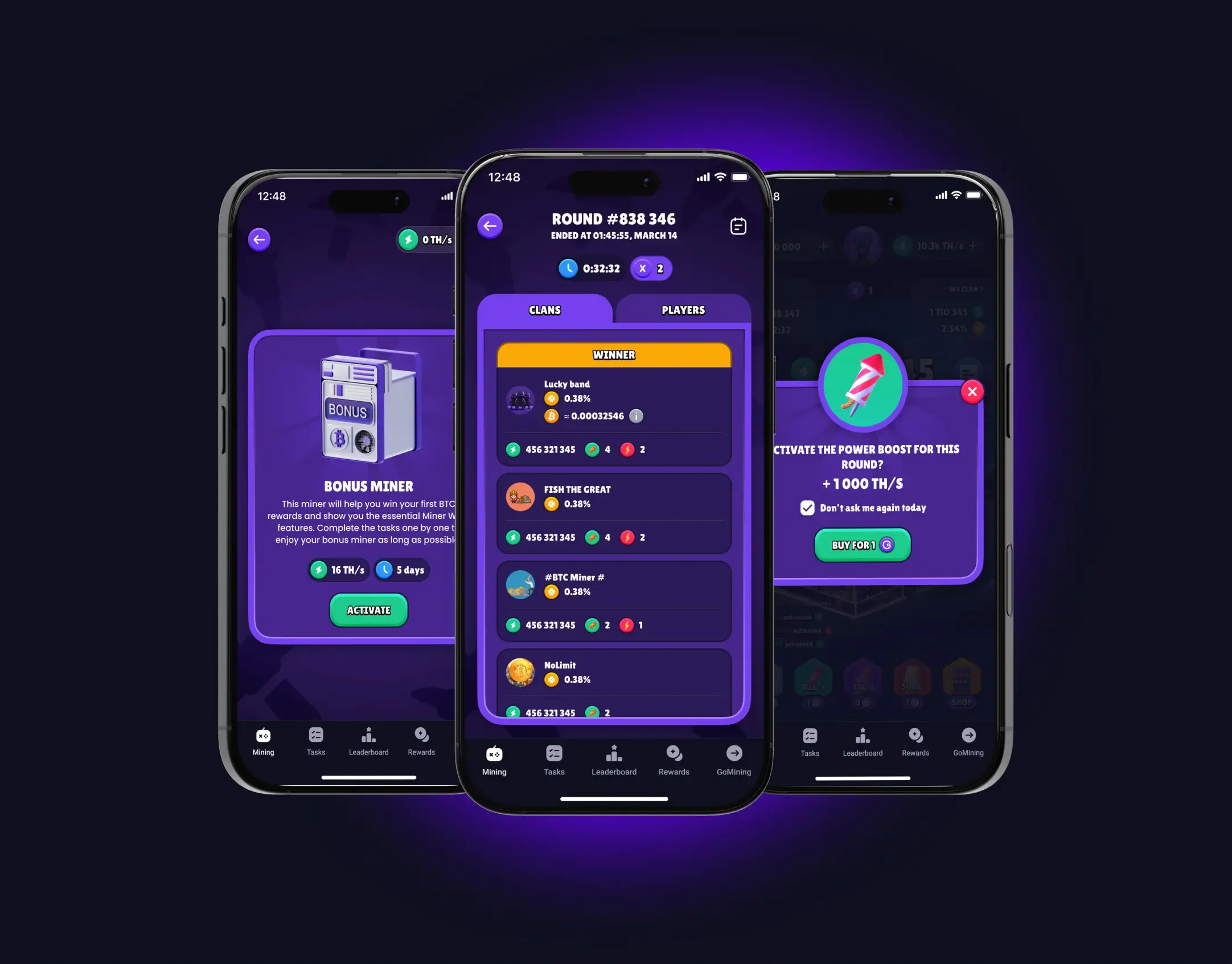 Upgrade your miners to boost your permanent power, accumulate points faster in every round. The stronger your miner, the greater your potential BTC and GOMINING rewards